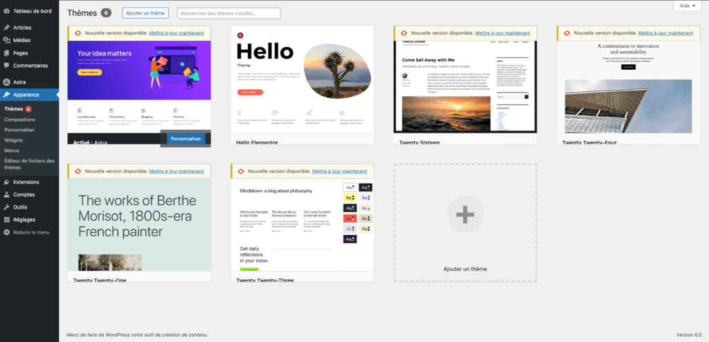 2- Une fois sur cette page cliquer le bouton « personnaliser » de votre thème.